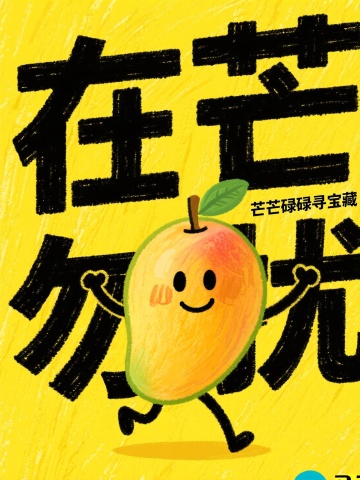 可爱卡通风格插画,中心是卡通芒果杨枝甘露杯,黄色杯身,顶部有芒果块和西米,杯口插着小勺子。浅蓝色背景,下方有不规则形状文本框,填充橙黄色,内部白色文字“芒着开心甘露”,边框为深黄色。周围有Q版芒果块和绿色西柚粒,点缀气泡,整体清新治愈,线条圆润柔和,色彩明快通透,带有轻微磨砂质感。