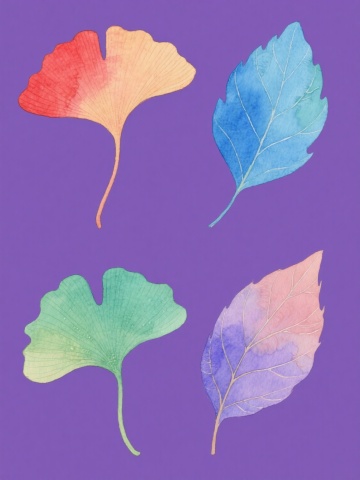 简约现代风格设计,纯色背景,六个不同样式的落叶素材规整排布。落叶采用水彩质感描绘,叶片边缘清晰,叶脉纹理细腻,色彩呈现从橙黄到橘红的渐变过渡,叶柄细长,整体造型自然舒展,无文字、无logo、无水印,画面干净整洁,视觉层次分明。