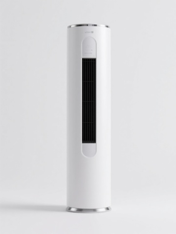 客厅场景,挂墙式空调正在运行,吹出带有画面感的凉风,空间感强,整体简洁温馨的装修风格,光线柔和,色调温暖
