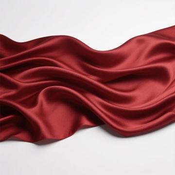 飘逸的酒红色真丝面料,呈现出流畅自然的波浪形态,具有细腻的光泽感和柔软的垂坠质感,背景为纯白色,整体画面简洁优雅,光影过渡柔和,突出丝绸的顺滑与灵动。