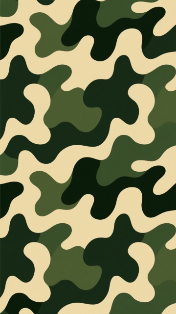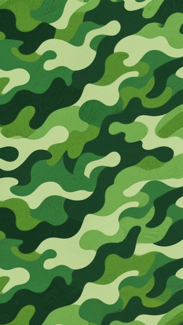 高分辨率无缝迷彩图案,以深绿色、中绿色和浅绿色为主要色调,呈现出自然融合的色彩过渡。图案由不规则的波浪状色块和扭曲的线条构成,具有手绘质感的纹理效果,整体风格偏向抽象艺术,色彩和谐统一,充满军事风格的粗犷与沉稳感,适合作为背景或装饰元素使用。