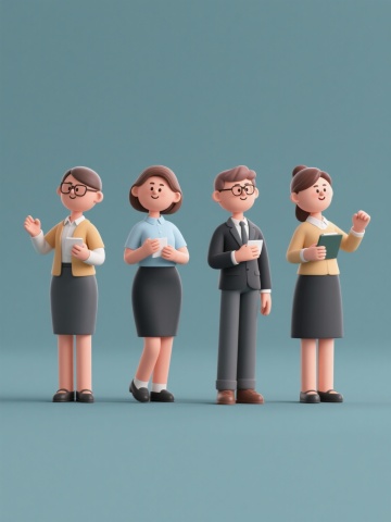 4个不同造型的3D白色卡通小人系列素材集合,保持简约圆润的3D低多边形风格,纯白色小人身体,光滑细腻的材质质感,柔和的阴影效果,每个小人姿态各异:一个双手抱胸托腮思考,一个单手叉腰站立,一个双手高举欢呼,一个盘腿坐地,它们被规整地排布在纯白色背景上,形成一组风格统一的系列素材。
