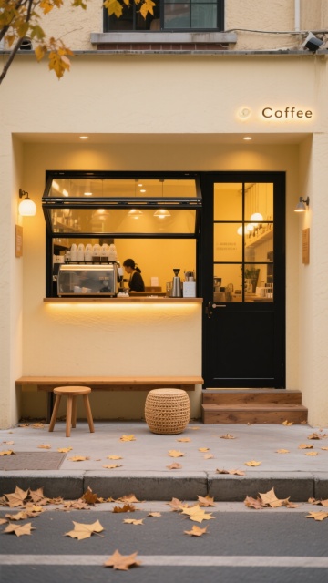 一个温馨舒适的咖啡厅内部场景,采用温暖的木质色调与柔和灯光营造出惬意氛围,天花板悬挂着复古风格的“TEA COFFEE”霓虹招牌,吧台区域摆放着意式咖啡机、磨豆机和各种咖啡器具,吧台上放置着小巧的绿植和装饰画,旁边是两个带软垫的高脚凳,墙面一侧是多层木质书架,上面整齐排列着书籍和咖啡相关物品,另一侧设有舒适的卡座沙发区,地面铺有带有复古字母图案的地毯,整体空间布局紧凑而有序,光影效果柔和自然,细节丰富,充满生活气息。