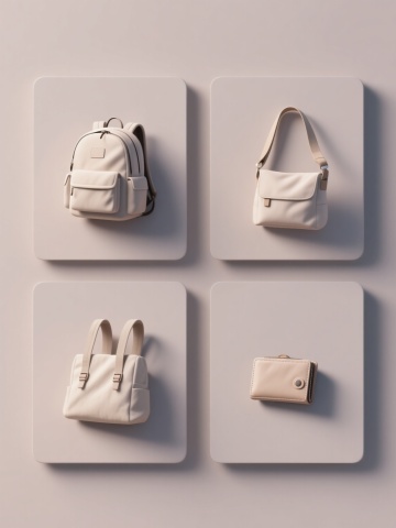纯色背景上的软3D风格图标集合,包含四个完全不同元素内容的拉链图标,规整排布。每个图标都采用圆润的软3D建模,表面有细腻的光影过渡和轻微的渐变效果,整体色彩进行了变换。第一个是书包拉链图标,呈现出书包上常见的粗齿拉链样式,拉头带有品牌标识的凹槽设计;第二个是裤子拉链图标,展示了牛仔裤上典型的金属齿细密拉链,拉头小巧精致;第三个是外套拉链图标,表现出外套上常用的防水拉链样式,带有明显的防水胶边细节;第四个是床帘拉链图标,呈现出大型窗帘上使用的宽齿拉链,拉头较大便于拉动。所有图标均保持统一的软3D风格和元素类目,通过变换不同的色彩来区分各个图标,整体布局整齐有序,具有清晰的视觉层级和信息传达效率。