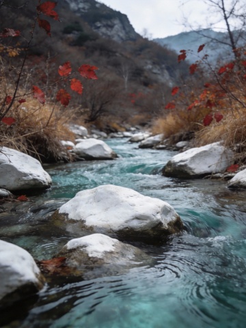 荆溪白石出,天寒红叶稀
