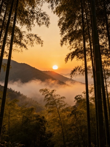 山际见来烟,竹中窥落日