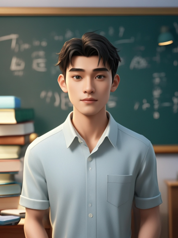 迪士尼风格,3D角色,一名20多岁的中国女教师,五官精致,背景有地球仪,黑板