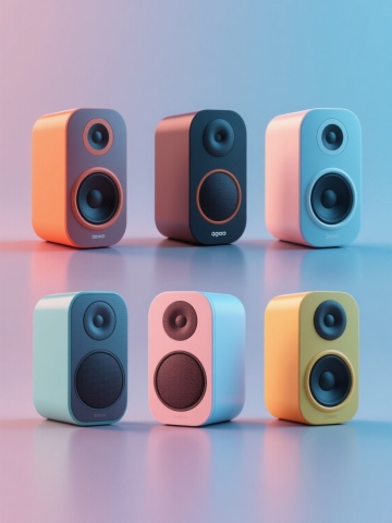 软3D风格的厨房家电系列素材集合,六个完全不同元素内容的规整排布,纯色背景,整体变换色彩,包含微波炉、电磁炉、电饭煲、冰箱、咖啡机、烤箱,每个家电都有光滑的金属质感和简洁的线条设计,高光和阴影自然过渡,展现出现代简约的厨房电器形象