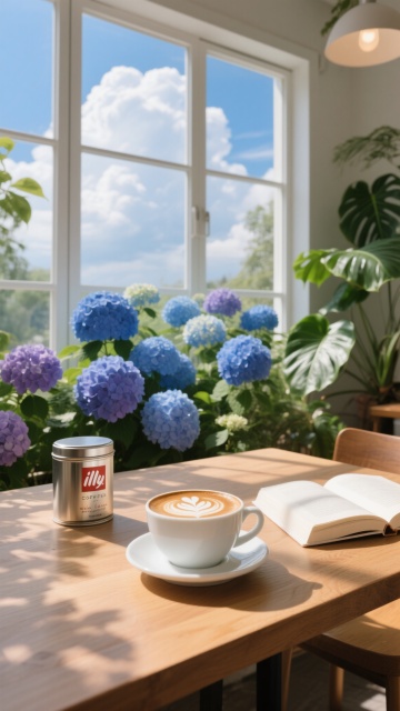 一张精心打磨的木质餐桌,木纹清晰可见,呈现出温暖的浅棕色调,桌面被柔和的光线照亮,营造出温馨舒适的氛围。餐桌位于画面中心,占据主要视觉空间,桌面光洁平滑,边缘线条简洁利落。背景是模糊的咖啡馆室内场景,能隐约看到柔和的灯光、舒适的座椅轮廓以及窗外朦胧的夜景光斑,整体色调明亮温暖,以原木色、米白色和浅棕色为主,光线从斜上方洒下,在桌面上形成自然的光影过渡,突出木质纹理的质感,画面整体采用写实摄影风格,景深控制得当,前景餐桌清晰锐利,背景柔和虚化,营造出宁静惬意的用餐环境氛围。