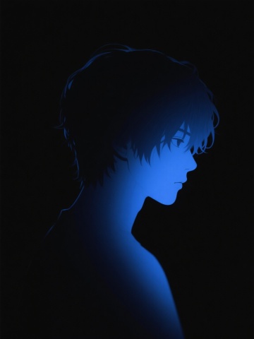 梦幻插画风,超现实主义设计,少年凝视卷轴堆,星月环绕,营造神秘氛围。
