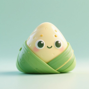 3D风格的卡通粽子,拟人化设计,塑料质感,可爱表情,端午节创意。