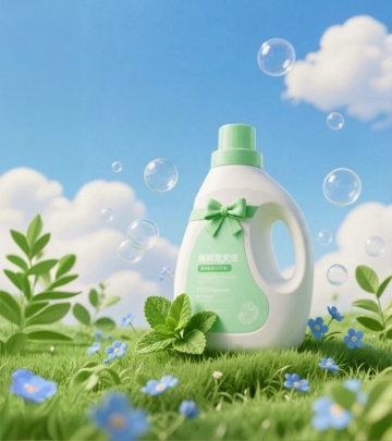 4个不同样式和配色的洗护用品瓶子,每个瓶子都有独特的形状设计和颜色搭配,排列整齐地置于纯白色背景上,整体呈现简约现代的3D渲染风格,光线柔和均匀,瓶身光滑有轻微反光质感,阴影细腻自然,突出产品的干净纯粹与设计感。