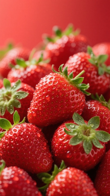 清新草莓与苹果,简约木质托盘,柔和自然光,营造温馨日常氛围。