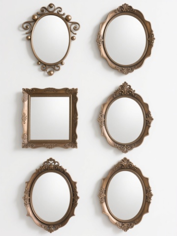 白色纯色背景上,四个具有高度统一视觉风格的金色边框元素规整排布。每个边框均保持原图中金色的奢华质感、光滑的金属表面、精确的线条勾勒和适度的高光反光效果,边框整体呈现为矩形框架结构。但四个边框在细节设计上各具特色:第一个边框为双层细金边,内侧边缘有精致的连续回纹图案;第二个边框为单层宽金边,上下边框中央装饰有对称的金色卷草纹浮雕;第三个边框为多层叠加重构的不规则金边,边框角落有简约的几何切面设计;第四个边框为带有内凹阴影效果的金边,边框线条呈现出微妙的波浪形起伏。整体设计简洁大气,金色边框在白色背景上形成鲜明对比,四个不同造型的边框元素既保持了系列感的统一,又通过细节变化展现出丰富的视觉层次。