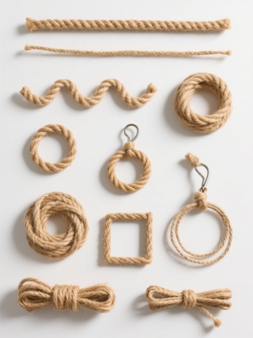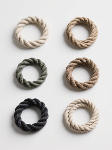 6个不同配色、不同样式、不同材质的吊牌,白色背景,排列整齐,每个吊牌都有麻绳挂绳,吊牌呈长方形,边缘有轻微弧度,具有清晰的光影效果和立体感,材质分别为牛皮纸、光滑卡纸、磨砂塑料、木质纹理、金属质感和布面纹理,配色涵盖棕色、蓝色、绿色、红色、黑色和米色,整体设计简洁干净,具有产品展示的清晰视觉效果。