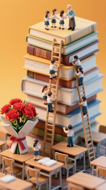 这张教师节作品以乐高积木搭建出创意场景,“教师节”三字与建筑相融,呈现3D立体风格。积木块的拼接如同教师的教学,将知识与创意一块块搭建进学生的成长中。画面里的师生互动场景,鲜活展现了校园的温暖日常。这种设计融合乐高元素与建筑风格,色彩鲜明且充满艺术感,灵感在于以童趣化的积木构建,象征教师用创意与耐心,为学生搭建知识的城堡、成长的乐园,在教师节之际,传递出对教师搭建人生基石的感恩与赞颂。