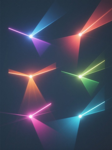 一套6个激光光束元素的系列素材集合,规整地排布在纯黑色的纯色背景上,采用2行3列的网格布局,光束之间保持均匀的间距,形成整齐有序的视觉效果。所有光束都保持着相同的数字艺术风格,具有平滑的渐变过渡、清晰的光束边缘和明亮的高光效果,每个光束都从顶部发出,向下照射,在底部形成柔和的光晕效果。第一个是红色的宽扇形光束,第二个是橙色的窄锥形光束,第三个是黄色的多束放射状光束,第四个是绿色的分叉光束,第五个是蓝色的螺旋形光束,第六个是紫色的波浪形光束。