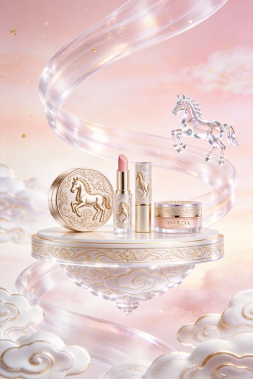 梦幻鎏金风,中式浮雕与3D玻璃质感交融,马年主题奢美呈现,云纹环绕,尽显优雅与奢华。