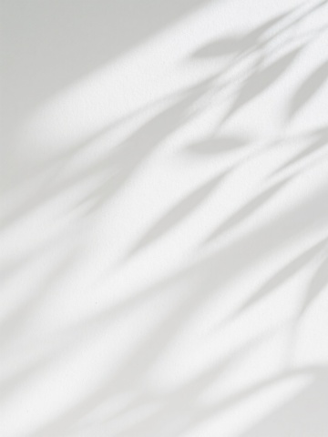 一张具有柔和光影效果的白色背景图,画面中呈现出自然的树叶阴影纹理,阴影线条清晰且富有层次感,光影过渡自然柔和,整体氛围宁静舒适,适合作为阴影素材使用。
