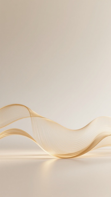 高级简约背景,以纯净柔和的米白色为基调,画面右侧有流畅飘逸的金色曲线造型,线条纤细且带有精致的纹理,呈现出优雅的动态感,边缘处有淡淡的金色光晕,整体风格简洁大气,光影过渡自然,营造出高端典雅的氛围,具有现代设计感。