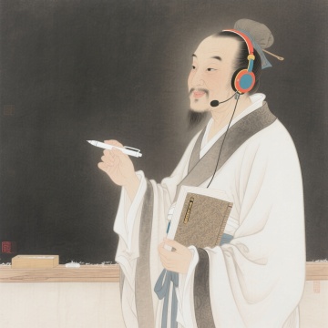 古典中式工笔风,描绘文人雅士授徒场景,水墨淡雅,尽显传统文化韵味。