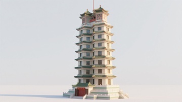 软3D微缩艺术风格,融合中式建筑元素与几何造型,呈现卡通感体积感,展现城市地标新意趣。
