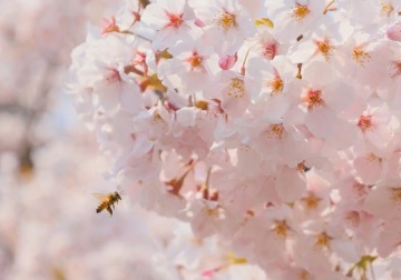 明媚阳光下绽放的粉色樱花特写,娇嫩花瓣呈现柔和渐变,花蕊点缀着淡黄色,纤细的棕色枝干支撑着繁茂的花朵,背景是纯净的浅蓝色天空,整体画面采用明亮通透的自然光,浅景深效果使前景樱花清晰锐利而背景逐渐柔和模糊,色调以粉白为主、蓝为点缀,营造出清新、浪漫、充满春日气息的氛围,高饱和度与柔和对比度展现出樱花的娇嫩质感与生机盎然。