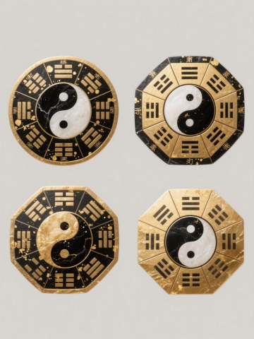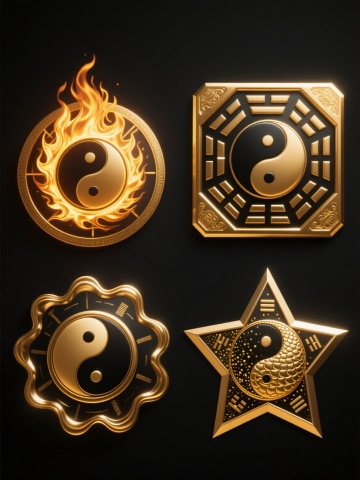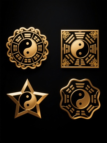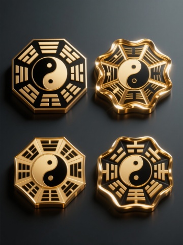 神秘东方玄幻风格的八卦背景,金色与深蓝交织的宇宙星空,中央是巨大的阴阳太极图,太极图外圈环绕着繁复的古老符文,符文边缘有流动的金色光纹,太极图下方是多层同心圆的金色阶梯状平台,平台边缘有云雾缭绕,无数金色的光点和光束从上方垂直洒落,背景中漂浮着金色与青色的飘逸云纹,整体画面呈现出强烈的神圣感与神秘感,光影对比鲜明,细节丰富,具有浓厚的东方神秘主义色彩和宇宙浩渺的意境。