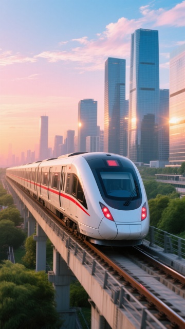 重庆城市风光,现代化跨座式单轨列车穿楼而过,多层错落有致的居民楼与高层建筑环绕,绿色植被覆盖的山坡,晴朗无云的蓝天,温暖明亮的阳光照射,写实风格,高清晰度,展现山城独特的立体交通与建筑景观,色彩鲜艳饱和,光影对比强烈,视角低平仰视,突出列车与楼宇的宏伟感,充满都市活力与地域特色。