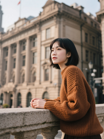 焦糖针织衫邂逅外滩,斜侧视角超复古😎