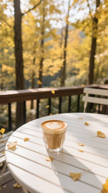 一杯优雅的白色陶瓷咖啡杯放在配套的白色碟子上,透明玻璃奶壶正将洁白的牛奶缓缓倒入杯中,形成优美的弧形奶流并在杯口激起细密的泡沫,晨光般柔和明亮的侧逆光从画面左侧照射,赋予牛奶和瓷器温润细腻的光泽与清晰柔和的阴影,整体呈现温暖清新的生活写实风格,背景替换为洒满阳光的窗台,摆放着几盆绿意盎然的多肉植物和一本翻开的复古笔记本,桌面上散落着几片干枯的银杏叶,营造出宁静惬意的晨间氛围。