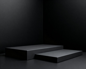 极简主义风格的白色台阶,由多个几何块状白色台阶组成,台阶表面带有细腻的磨砂纹理,柔和的侧上方光线照射在台阶和深灰色背景墙上,形成清晰锐利的光影交错效果,光线在台阶侧面和背景墙上投射出明显的阴影线条,整体画面呈现出宁静、简约、现代的氛围,具有强烈的立体感和空间层次,色调以白色台阶与深灰色背景形成鲜明对比,光影关系明确,质感细腻。