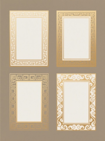 中国传统纹样装饰边框设计元素集,保持纯白色纯色背景,采用复古金色渐变线条勾勒,包含圆形、椭圆形、长方形、书卷形等多种形制边框,每个边框边缘装饰祥云纹、回纹、海水江崖纹等传统吉祥图案,线条流畅细腻,纹饰繁复精美,整体呈现典雅庄重的古典宫廷风格,适合用于古籍装帧、传统节日海报、中式产品包装等场景的装饰素材,设计元素独立清晰,可单独提取使用。