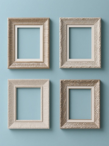一组4个完全不同元素内容的系列素材集合,每个元素均为3D渲染风格的画板,保持浅木色画架和白色画布的统一材质与结构,画布上分别是:1. 蓝色和绿色为主的抽象水彩笔触;2. 红色和黄色为主的几何色块拼接;3. 棕色和米色为主的线条构成图案;4. 紫色和粉色为主的渐变晕染效果,所有画板规整排布在纯色背景上,整体呈现简洁、统一的视觉风格。