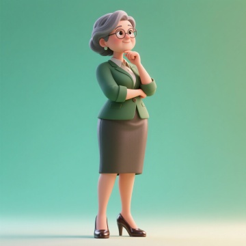 卡通感3D角色风设计,展现教师职业形象,生动立体,色彩鲜明,富有教育创意。
