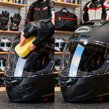 赛博朋克风夜景中,骑手疾驰于未来都市,金属质感机车与霓虹光影交织,头盔静置路面,虚实交错,科技感与酷炫感并存。