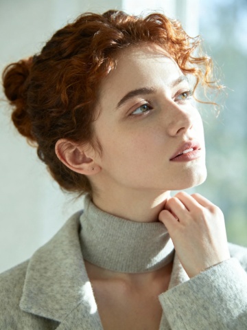 超近特写镜头,聚焦年轻女性的半张面部,细腻展现健康自然的皮肤质感,肌肤呈现出通透的米杏色基调,带有自然的浅棕色雀斑和细微的皮肤纹理,显得真实而有生命力。柔和的自然光从侧上方照射,在眼睑、颧骨和鼻梁处形成细腻的高光,光影过渡自然,立体感强。女性双眼轻闭,长而密的睫毛自然垂下,眉毛呈自然的棕色,形状柔和。唇部微张,唇色为自然的淡粉色,水润饱满。金色的发丝柔软地垂落在脸颊旁,整体氛围宁静、纯净,充满高级感。画面构图简洁,突出皮肤的自然状态和细腻质感,色调温暖柔和,光影运用精妙,展现出皮肤的健康光泽与自然肌理。