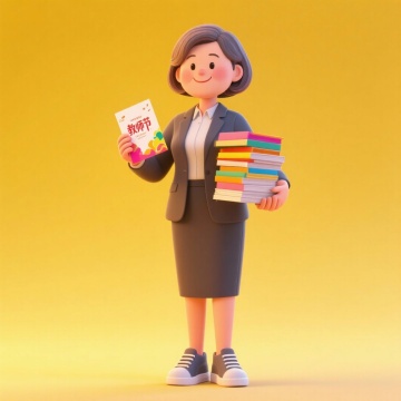 卡通感3D角色风设计,展现教师职业形象,生动立体,色彩鲜明,富有教育创意。