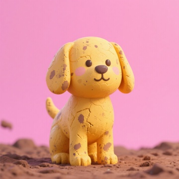 软3D风卡通小狗,粘土质感,可爱温馨,粉色背景衬托童趣。