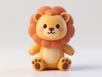 软3D风格的卡通小狮子,圆润可爱,塑料质感细腻,萌趣十足,适合节日礼品设计。