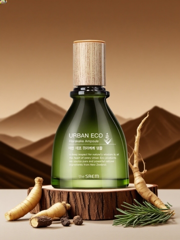 保持主体外观和形状。主体放置一根木块上,搭配人参、干枯树枝、陈皮、小玫瑰花。以暖棕色调远山为背景,营造古朴自然且高级的质感。
