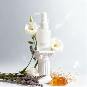 清新淡雅的性冷淡风设计,柔和光线下泡沫轻盈环绕,简约瓶身搭配轻拟物质感,营造出清透舒适的视觉体验。