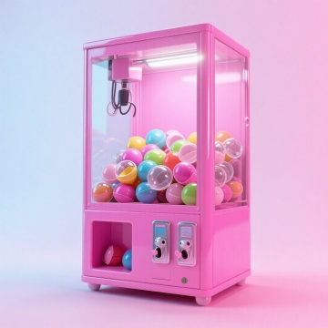 软3D风格的卡通老虎机,融合粘土质感与孟菲斯色彩,充满可爱与趣味感,顶部点缀像素奖杯,传递游戏节日氛围。