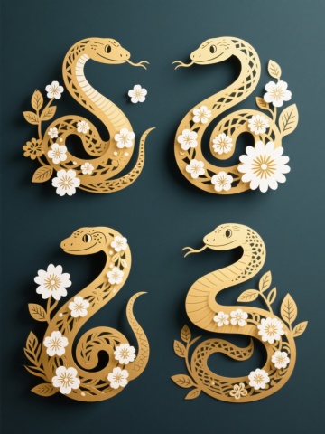 白色背景上,采用中国传统水墨风格与现代数字绘画结合的技法,生成两个造型完全不同的东方神龙系列素材集合,呈规整排布。第一条龙为威严的腾飞姿态,通体以朱红与金色为主色调,龙角尖锐如珊瑚,鬃毛与火焰状龙尾呈鲜红色并带有金色渐变,龙鳞为暗红色,腹部鳞片泛着金色光泽,龙爪锋利,颈部佩戴金色镶红宝石的环形饰品,整体气势磅礴,充满力量感。第二条龙为优雅的盘旋姿态,整体以翠绿与银色为主要色彩,龙角呈分枝状如青竹,鬃毛与尾部为柔和的翠绿色并带有银色飘逸感,龙鳞为深绿色,腹部鳞片为银白色,龙爪圆润,颈部佩戴银色镶绿宝石的环形饰品,姿态灵动,富有祥瑞之气。两条龙均保留东方神龙的核心特征:蛇身、鹿角、鹰爪、鱼鳞,身体盘绕,头部有长须,眼神锐利,细节丰富,线条流畅,色彩过渡自然,具有浓厚的中国传统神话韵味和精致的数字绘画质感,整体设计风格统一,造型各异,适合作为系列素材使用。