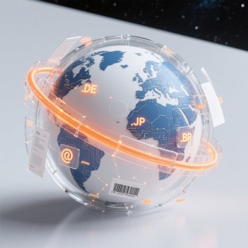 白色背景下的3D地球数字艺术,地球表面呈现深蓝色调,以精细的网格线和点阵构成大陆轮廓,大陆区域填充有密集的蓝色数字代码纹理,整体保持科技感与未来感的视觉风格。地球被发光的红色线条网络环绕连接,线条上分布着明亮的红色光点,形成动态的全球互联效果,光线具有轻微的光晕和辉光质感,阴影细节柔和,整体构图居中对称,展现出科技与全球化主题的和谐统一。
