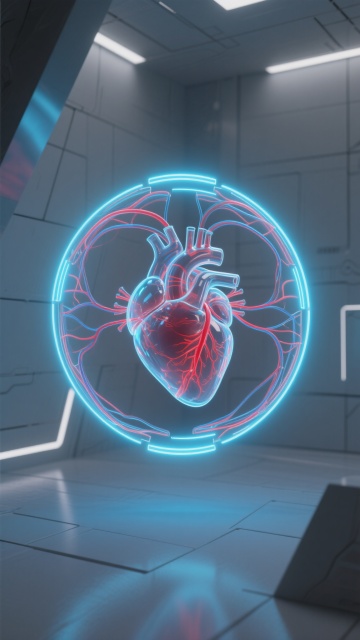 3D重拟物风格心脏,科技感十足,强体积与光影表现,柔和现代质感,虚拟现实视觉体验。