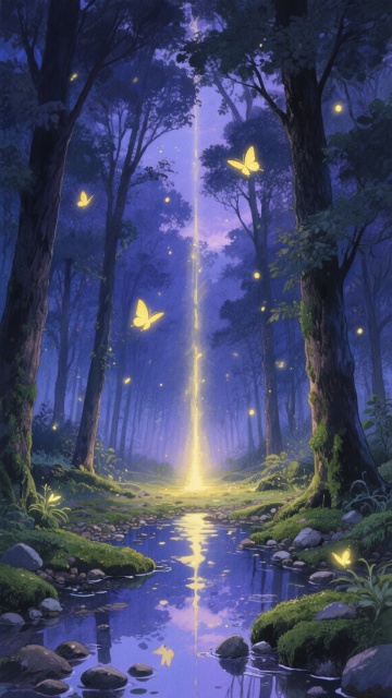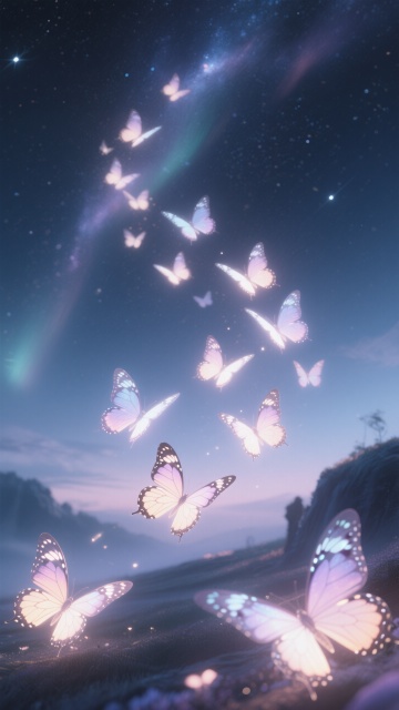 一只浅紫色蝴蝶翅膀造型的儿童书包,翅膀边缘有渐变透明感,书包上点缀白色蝴蝶纹路和星星挂饰,轻盈漂浮在秋日花园石阶上,离地几厘米。三个发光小精灵环绕书包,分别为嫩黄、浅蓝、淡粉色,手持同色半透明丝带动态飞舞,丝带带光带效果。背景是盛开的金黄色秋菊,花朵饱满层次分明,暖阳从上方斜射,形成光斑与光晕,空气中有金色魔法粒子。整体为梦幻童话风格,细腻插画笔触,柔和光影,温暖治愈奇幻氛围,象征梦想启航