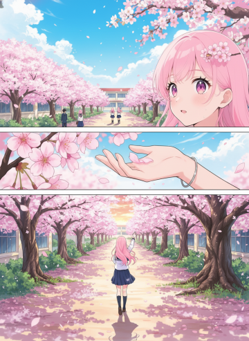动漫风格插画,柔和明亮的光影,粉色樱花飘落的唯美背景,蓝白渐变的天空,少女双马尾发型,白色衬衫搭配蝴蝶结领结,双手举起的动态姿势,细腻的面部表情刻画,透明感的樱花花瓣,阳光透过花枝的光斑效果,柔和的线条轮廓,温暖治愈的氛围,高饱和度的色彩搭配,层次感丰富的构图,飘落的樱花形成的动态效果,少女眼中的高光细节,整体画面的梦幻感,精致的服饰纹理,背景樱花树的细节描绘,天空中飘散的花瓣,少女微微仰头的视角,柔和的阴影处理,画面整体的通透感,符合动漫插画的细腻笔触,樱花与少女的和谐融合,粉色与蓝色的色彩对比,阳光照射下的明亮感,飘落花瓣的层次感,少女头发的飘动效果,背景的纵深感,整体画面的平衡构图,樱花花瓣的半透明质感,阳光的散射效果,符合动漫美学的人物比例,背景樱花的密集与疏朗对比,画面的动态与静态结合,温暖的色调处理,少女表情的纯真感,樱花飘落的自然轨迹,背景天空的渐变色彩,整体画面的清新感,符合动漫风格的光影处理,樱花与人物的互动感,画面细节的丰富性,整体氛围的宁静美好。