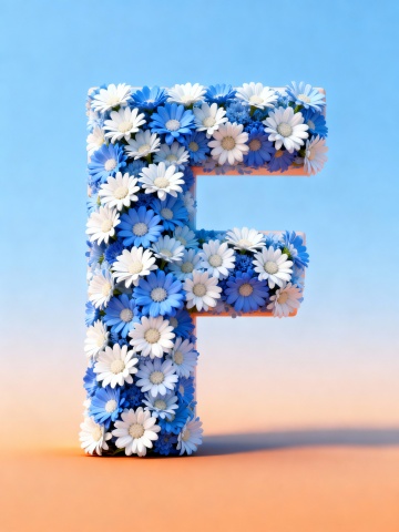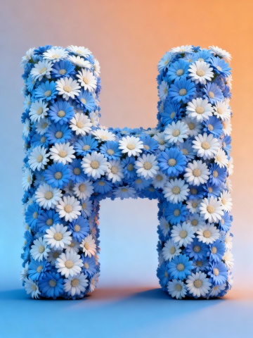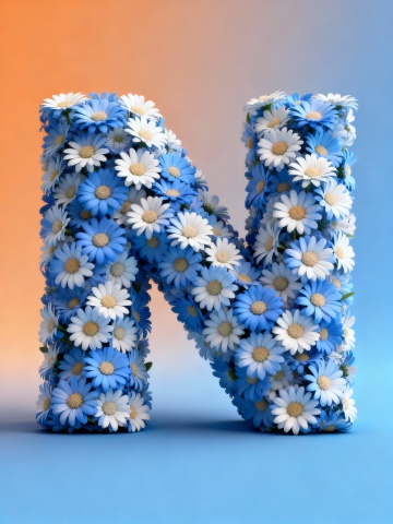 清新3D风设计,虚拟自然元素融入字母,展现生机勃勃的自然之美。
