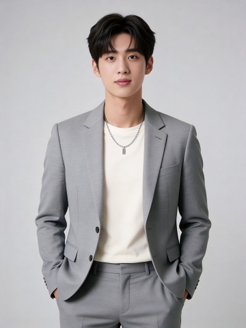 灰色西装稳重双手插兜男性职业形象照